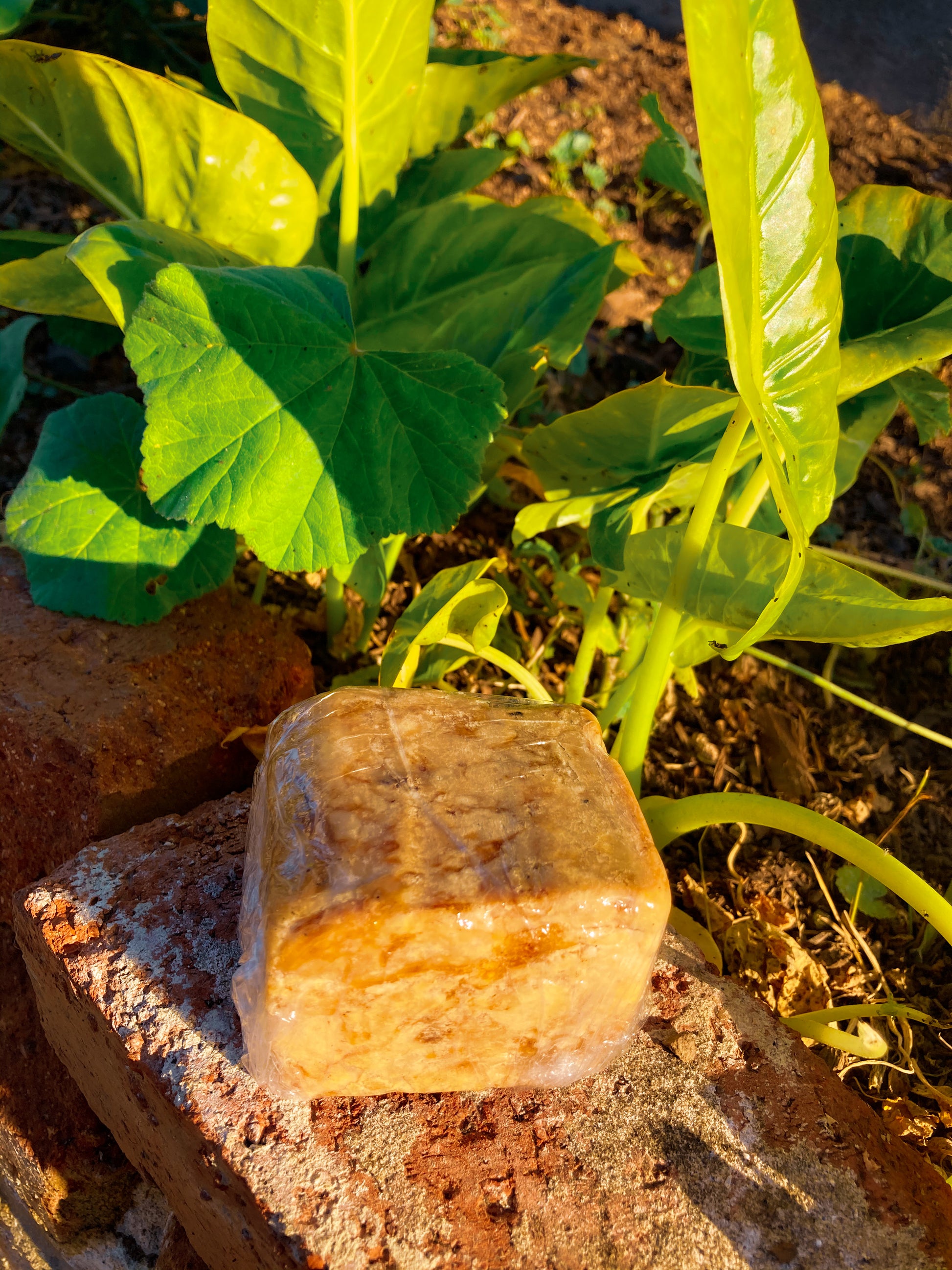 Note: The soap is raw and may contain little pieces of cocoa pod ash and plantain skin and can be felt when applying to the skin. Also keeping the bar of soap inside of the wrapping it comes with or in plastic can increase the freshness and lasting of the soap.